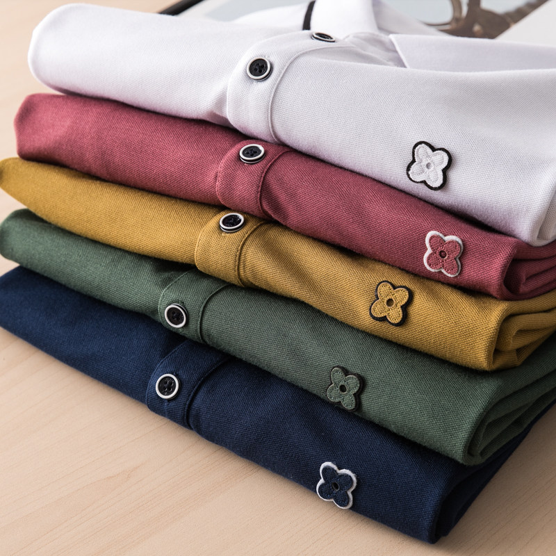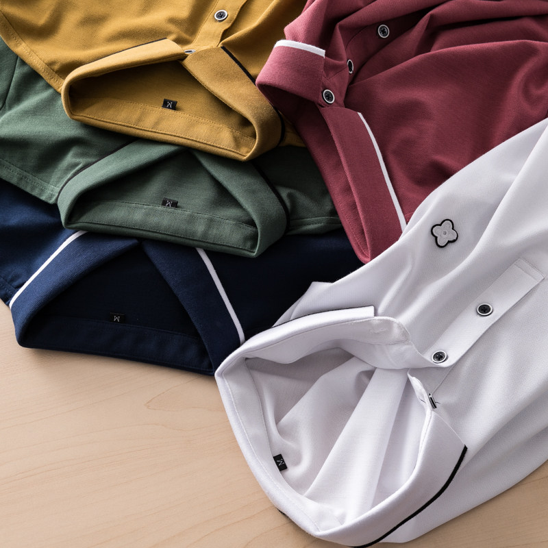 High-end temperament, smooth and delicate pearl mesh men's business solid color casual POLO shirt short-sleeved T-shirt trendy