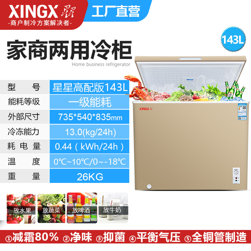 Stars BD BC-143GC Home Small Ice Freezer Refrigerated Frozen Snow Cabinet Commercial Horizontal Rush Freeze Fridge