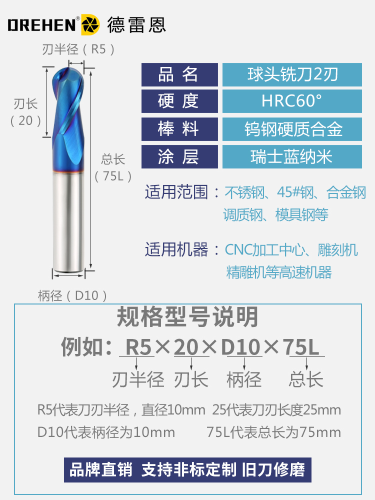 Non-standard knives can be customized. If you need others, you can ask customer service. R0 5*2*D4*50LR0 75*3*D4*50LR1*4*D4*50LR1 25