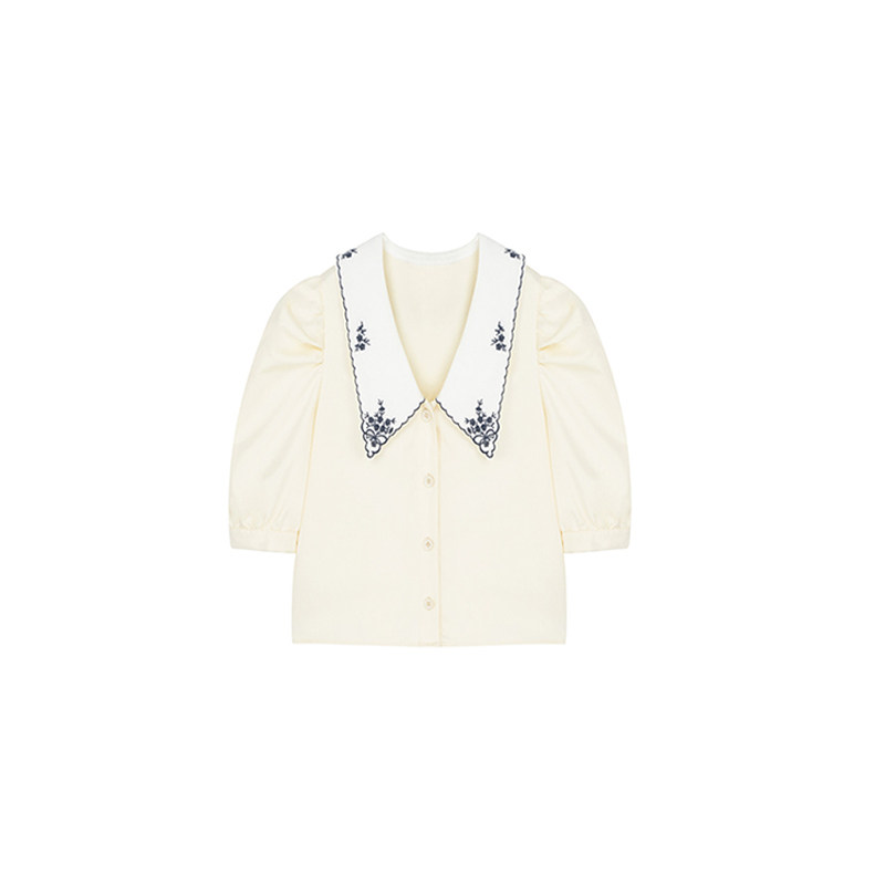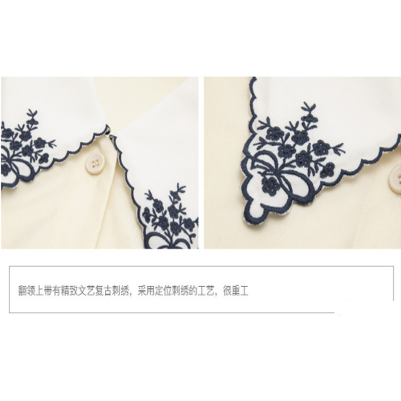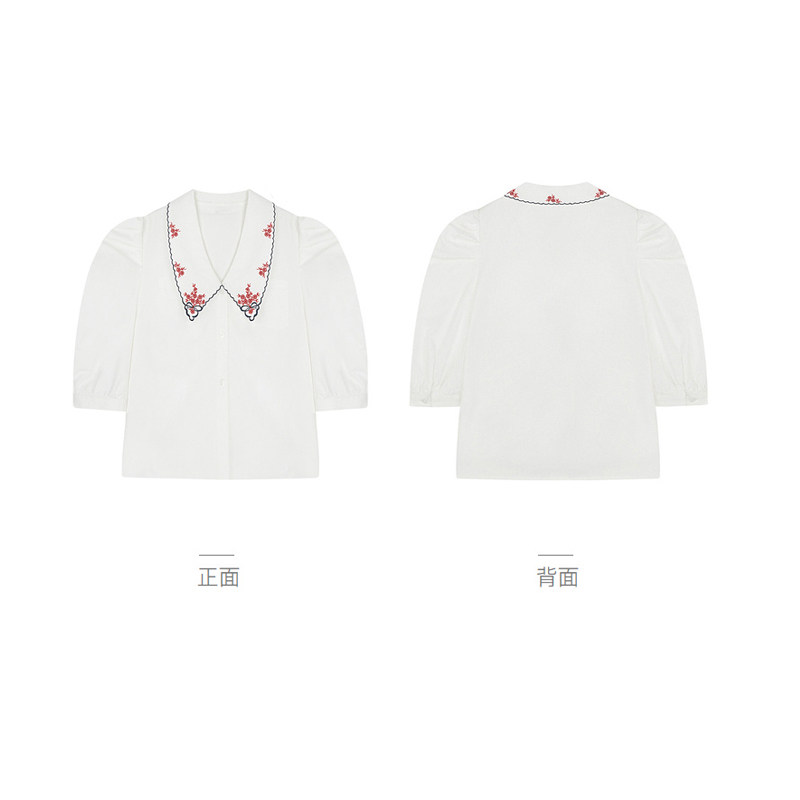 Embroidery turned collar white shirt woman design feeling small Korean version of bubble sleeve temperament spring dress blouses
