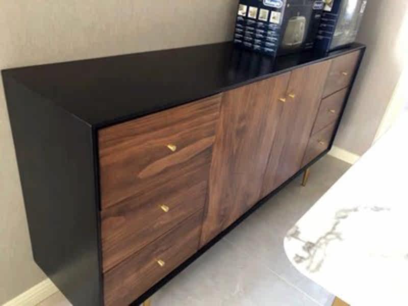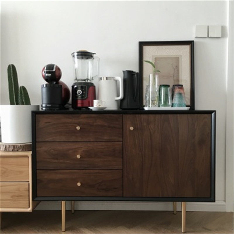 Simple modern dining cabinet tea cabinet Nordic solid wood locker TV cabinet living room black frame display cabinet locker