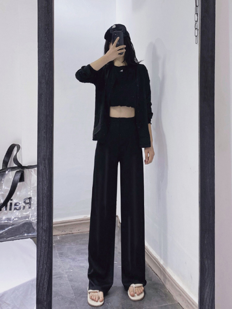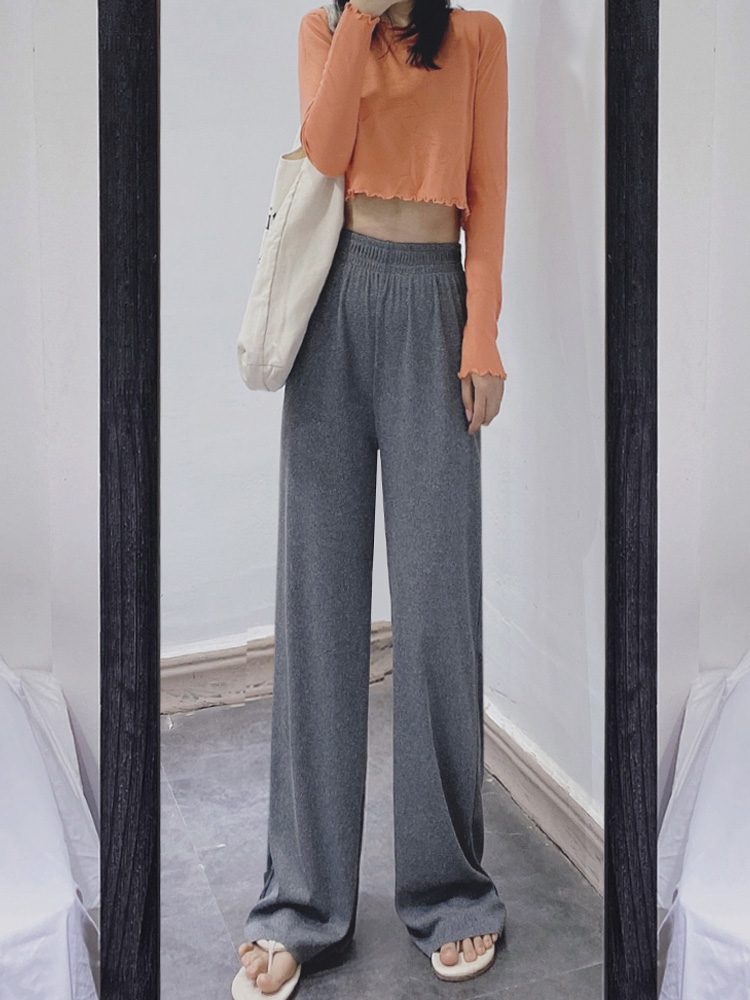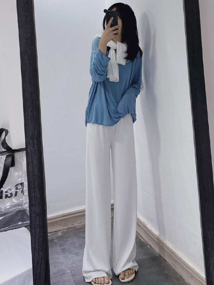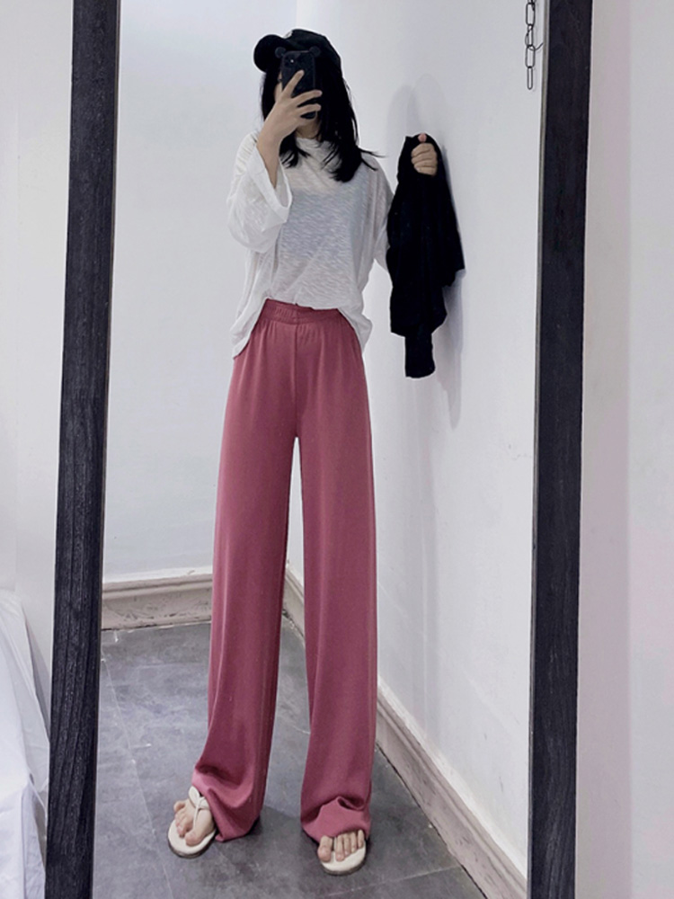 White wide pants women's summer new high waist thin section hanging ice silk mopping pants loose straight knitted casual pants