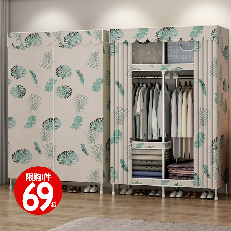 Simple wardrobe modern minimalist thickened cloth wardrobe steel pipe plus coarse reinforcement cloth art rental room with assembled hanging closet