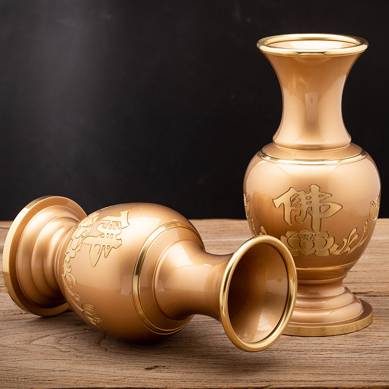 Pure copper vase Home use flower arrangement bottle for Buddha front worship supplies for a pair of Guanyin vase Flower arrangement for Buddha