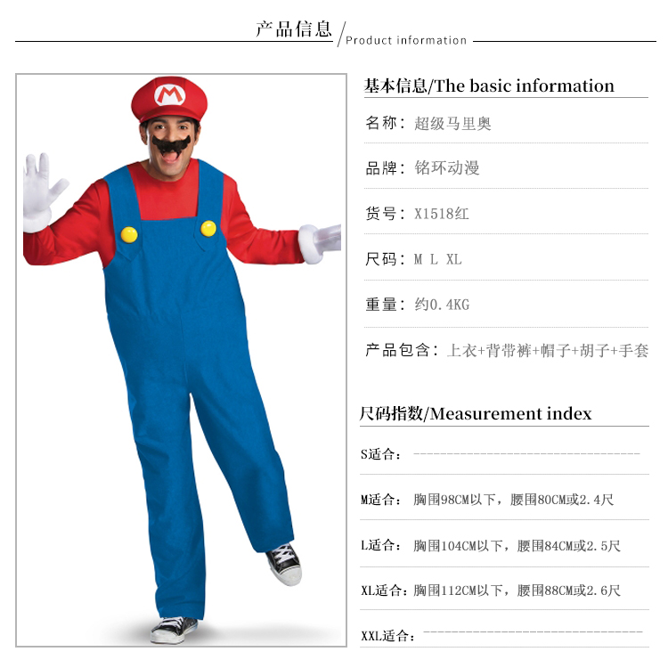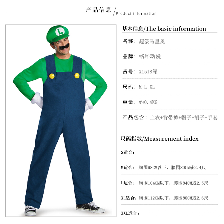 Halloween Clothing Adult Super Mario Clothes Mario Louis Cosmetic Party Cos Performance