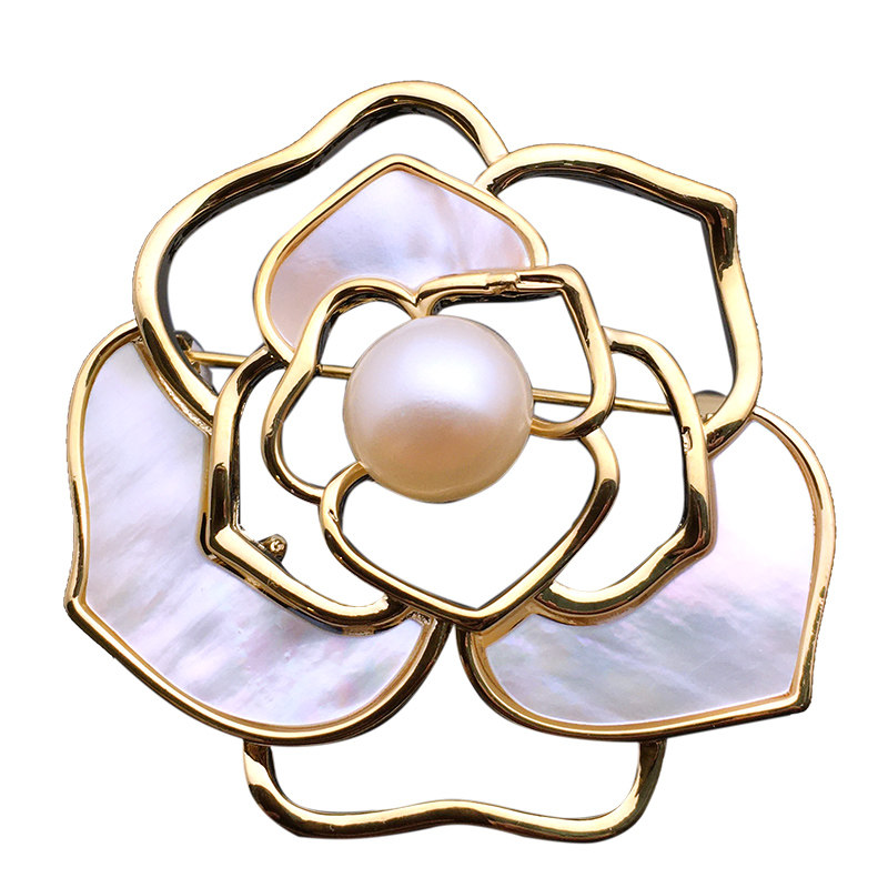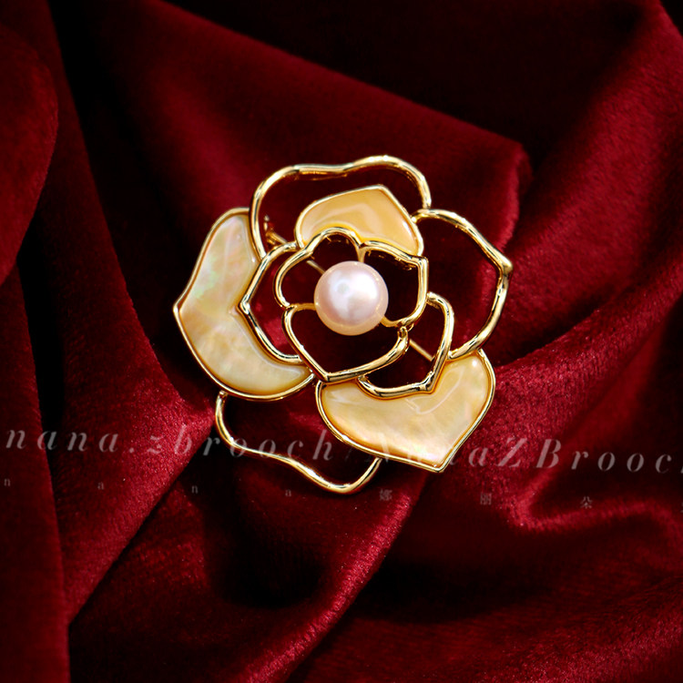 Camellia Natural Pearl Brooch Brooch Female Korean Luxury Atmosphere High-end Accessories Small Fragrance
