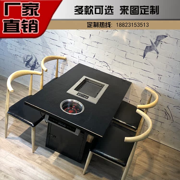 Smokeless Roast Barbecue Hotpot Table INDUCTION COOKERS ' INTEGRATED DINING ROOM WITH BURNT STONE HOT POT DINING TABLE AND CHAIRS COMBINED COMMERCIAL USE