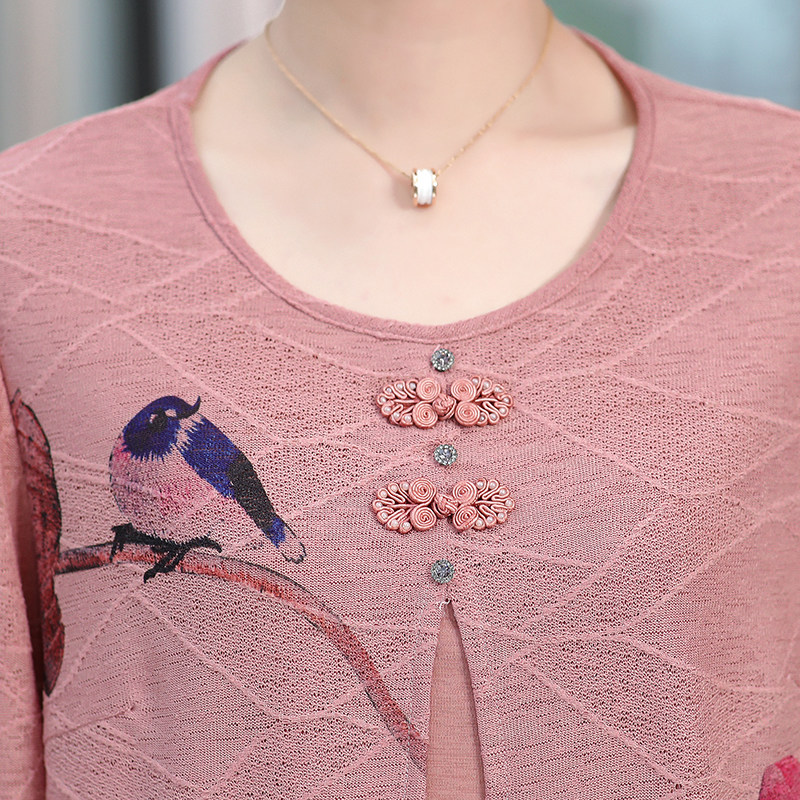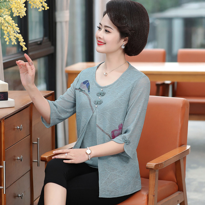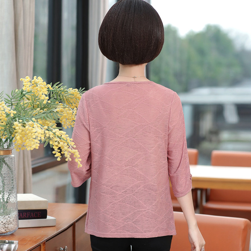 Middle-aged women's clothing spring and summer 50% sleeves T-shirt loose undershirt 40-50-year-old mom loaded with summer large size fashion women's blouse