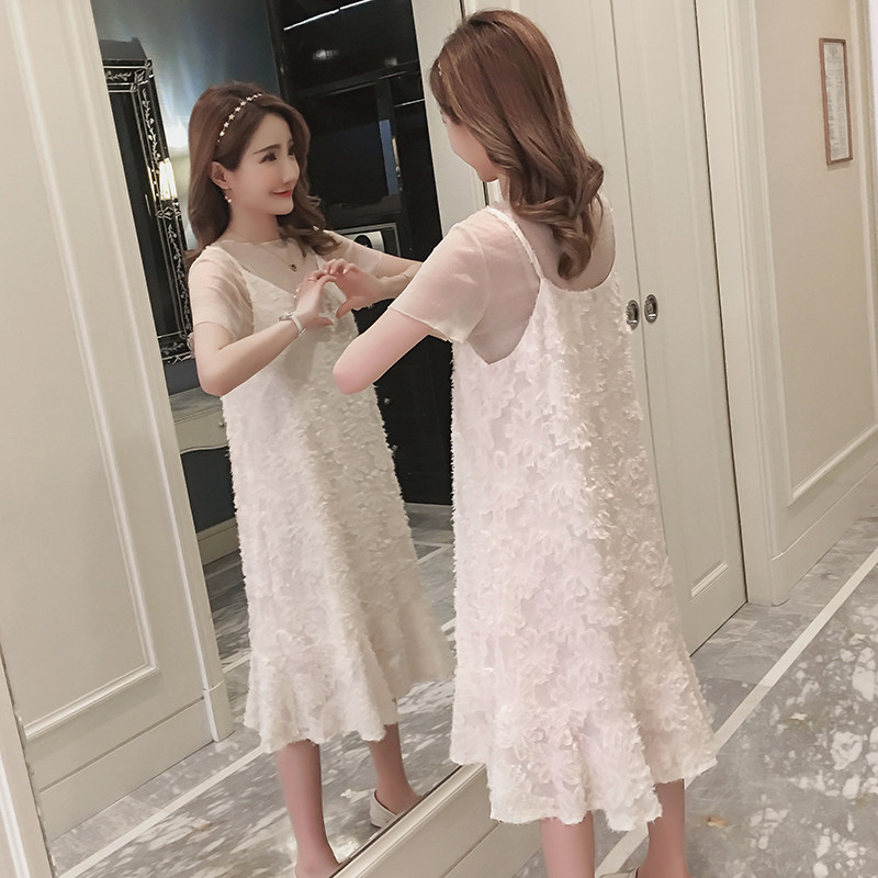 Pregnant Woman Foreign Dress Foreign Pie Dress Net Red Super Fairy summer Fashion Chaoma Personality Gestational Woman with little subsuit