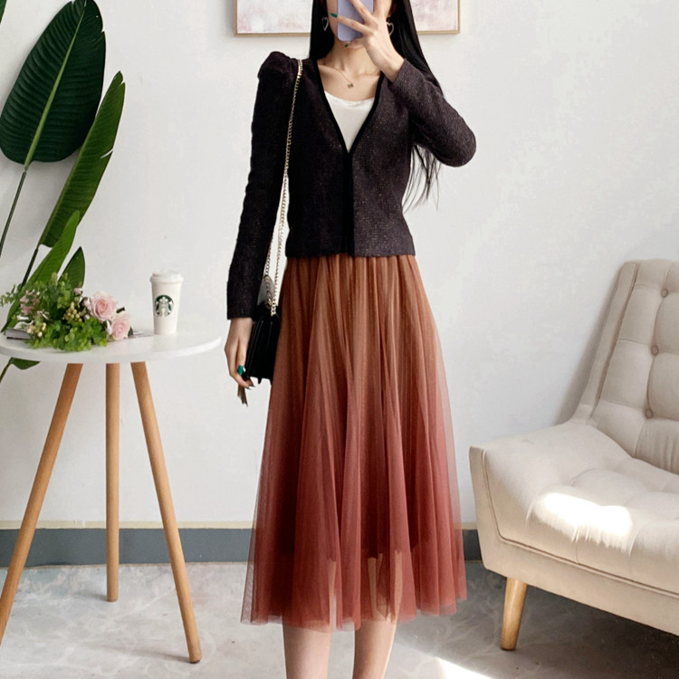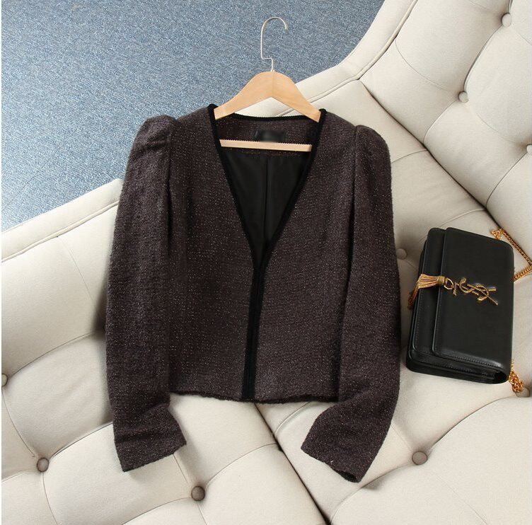 Special transitional season is very necessary Korean spring inlaid gold thread small puff sleeves soft lined knitted cardigan women's small coat