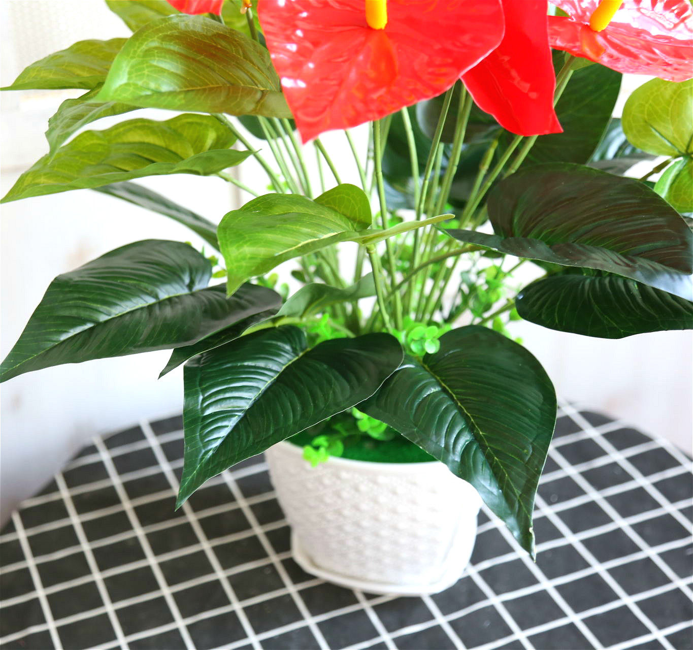 Fake Fire Cranes Plastic Basin Planted Flowers Hongyun When Head Green Plant Fake Flowers Bonsai Office Living Room Flower Opening Gifts