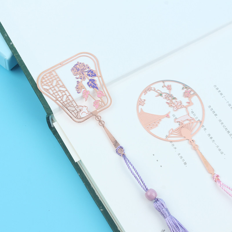 Metal hollow cute cat rabbit group fan bookmark literary exquisite tassel student antique gift customization