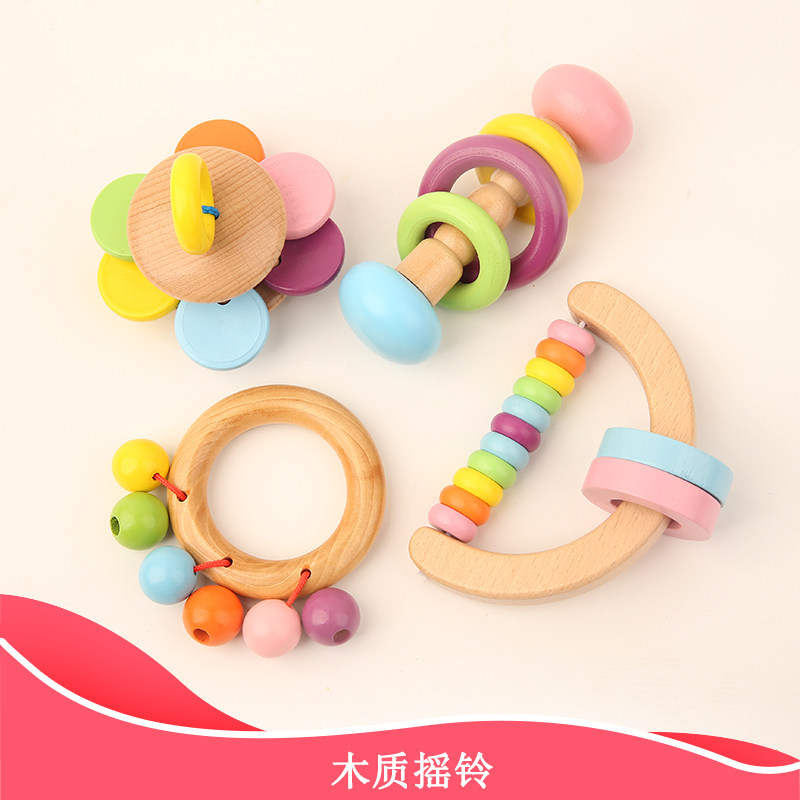 Wooden rattle hand bell Orff musical instrument for infants and young people to catch the bell baby vision hearing early education toys