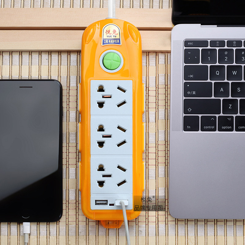 Large three-hole 16A socket multifunction panel porous with wire home plug-in USB power charging extension cord plugboard