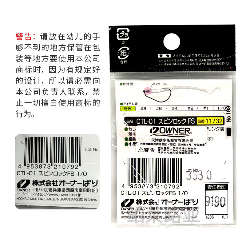 Oona OWNER anti-hanging soft bug hook CTL-01 ultra light fine hook bar fine for fishing soft bait bass Japan