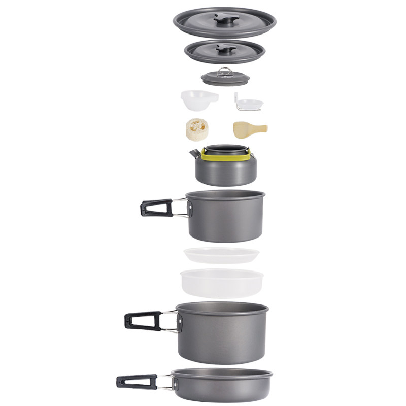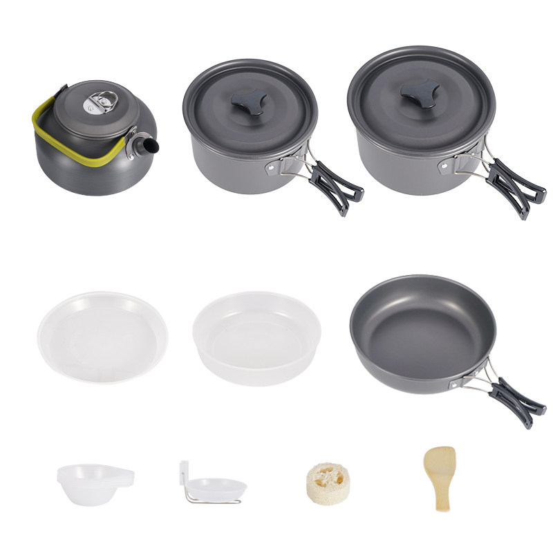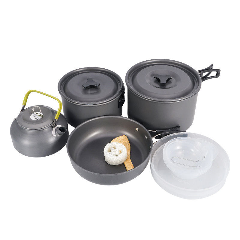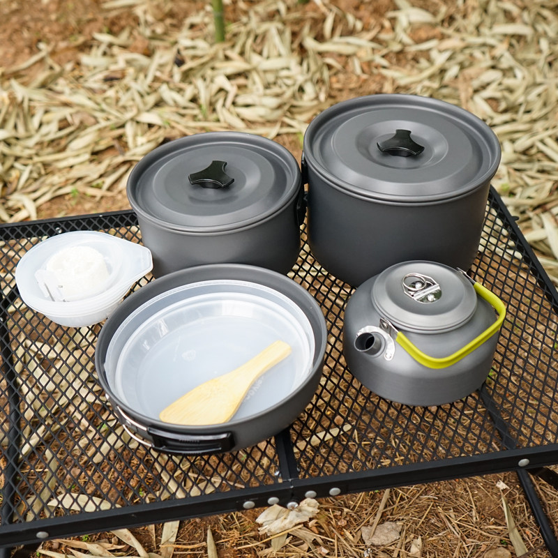 Outdoor set of pots and pans for 5-6 people Camping teapot set Portable picnic stoves Non-stick pots and pans Field cutlery cookware