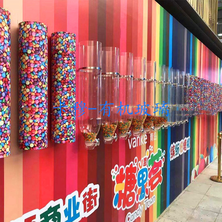High transparent organic glass rainbow sugar bottle acrylic tapered funnel confectionery bottle cylindrical with valve candy cylinder