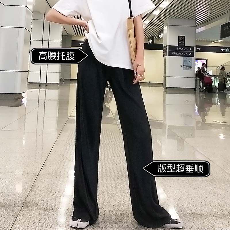 Maternity wear spring and summer outer wear loose wide-leg pants Net red tide mother ice silk chiffon women's nine points spring and autumn casual pants