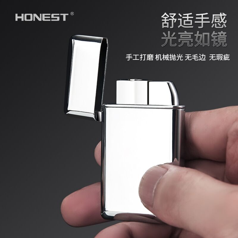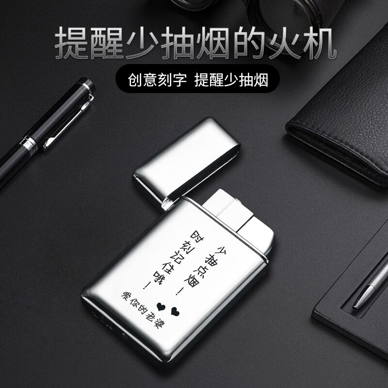 Metal inflatable windproof lighter upscale ultra-thin button cigarette lighter flip lighter free lettering
