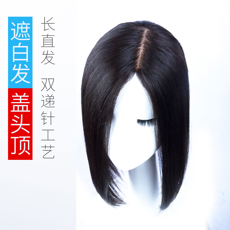 Real hair delivery needle wig one piece cover the top of the head middle and long hair cover white hair artifact natural invisible replacement hair piece female
