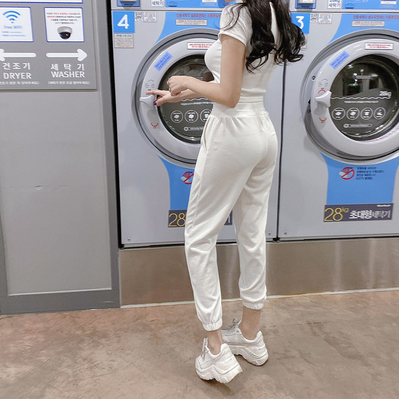 Sports suit women's 2022 spring and summer new Korean slim fit short-sleeved T-shirt pants casual two-piece trend
