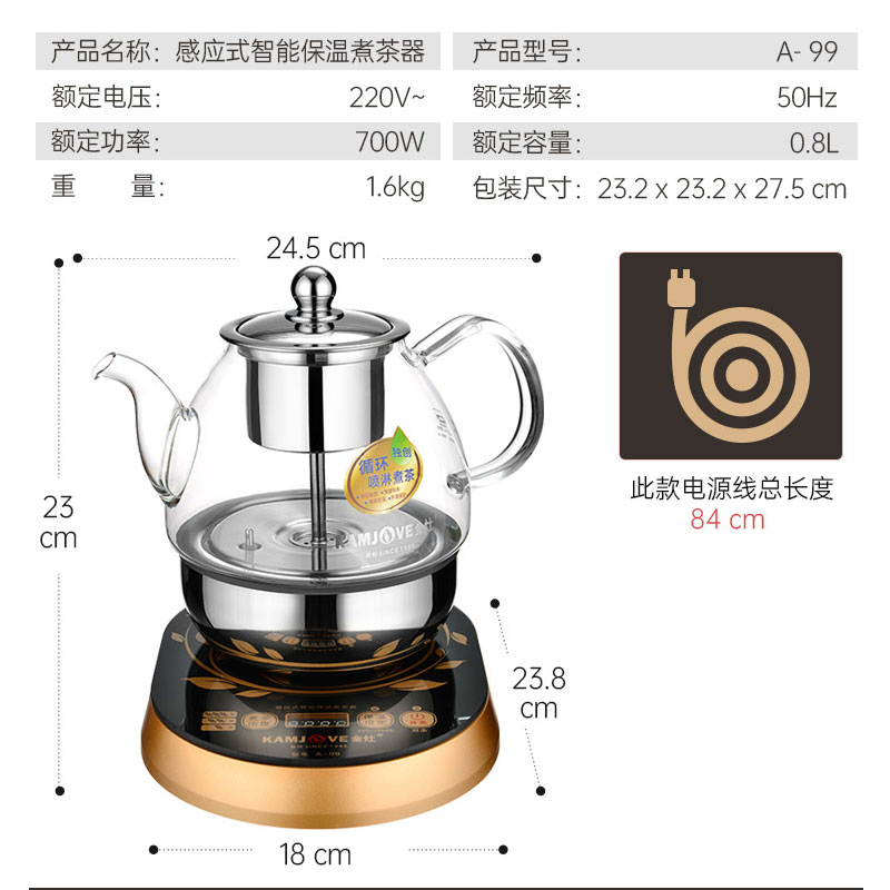 Gold Oven Cooking Teapot A-99 Fully Automatic Cooking Tea Ware Black Tea Steam Spray Cooking Teapot Glass Teapot Tea Tea Tea Tea Tea
