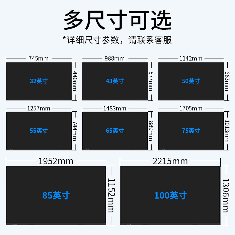 32 inches 43 inches 50 inches 55 inches 65 inches 75 inches 86 inches 100 inches