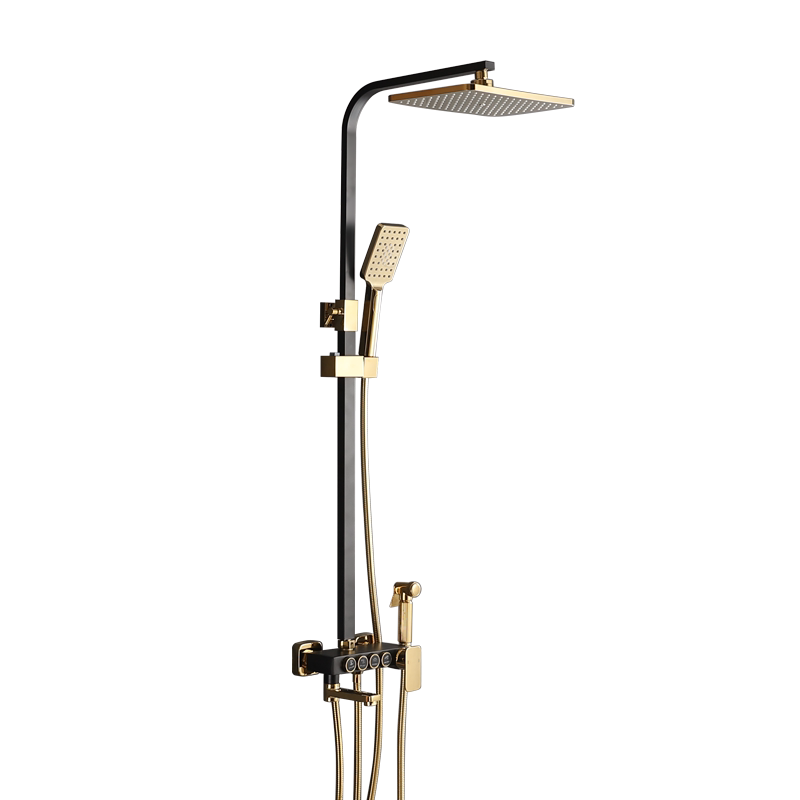 Constant temperature black button number display LCD screen gold shower household pressurized shower head All copper faucet shower