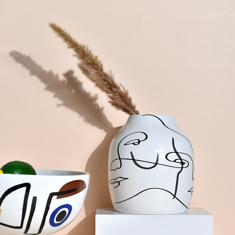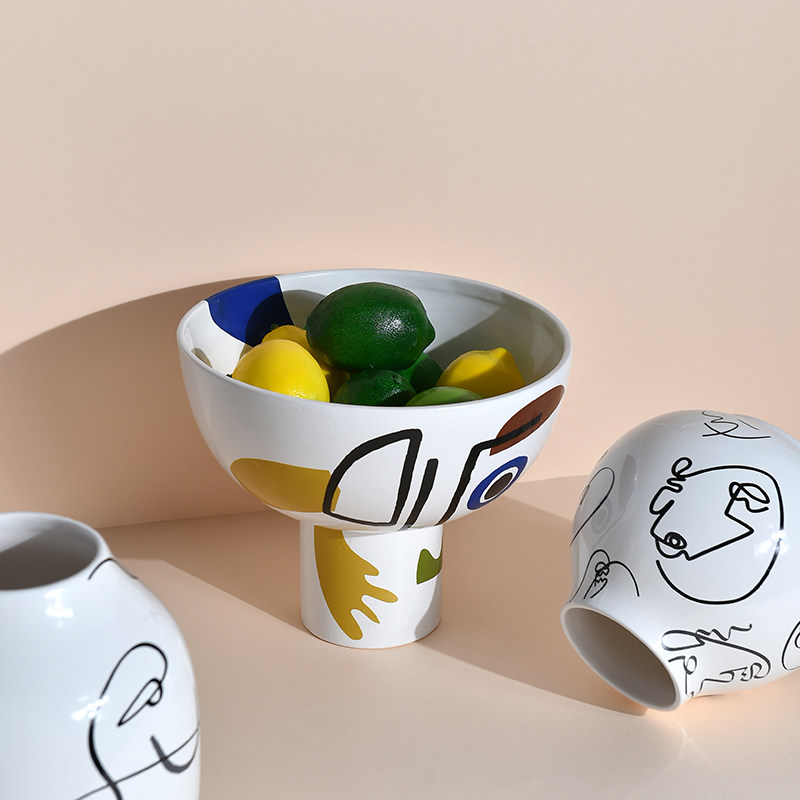 Dnnni Abstract Face Painting Ceramic Flower Tray Nordic Simple Art Line Creative Soft Decoration Ornament