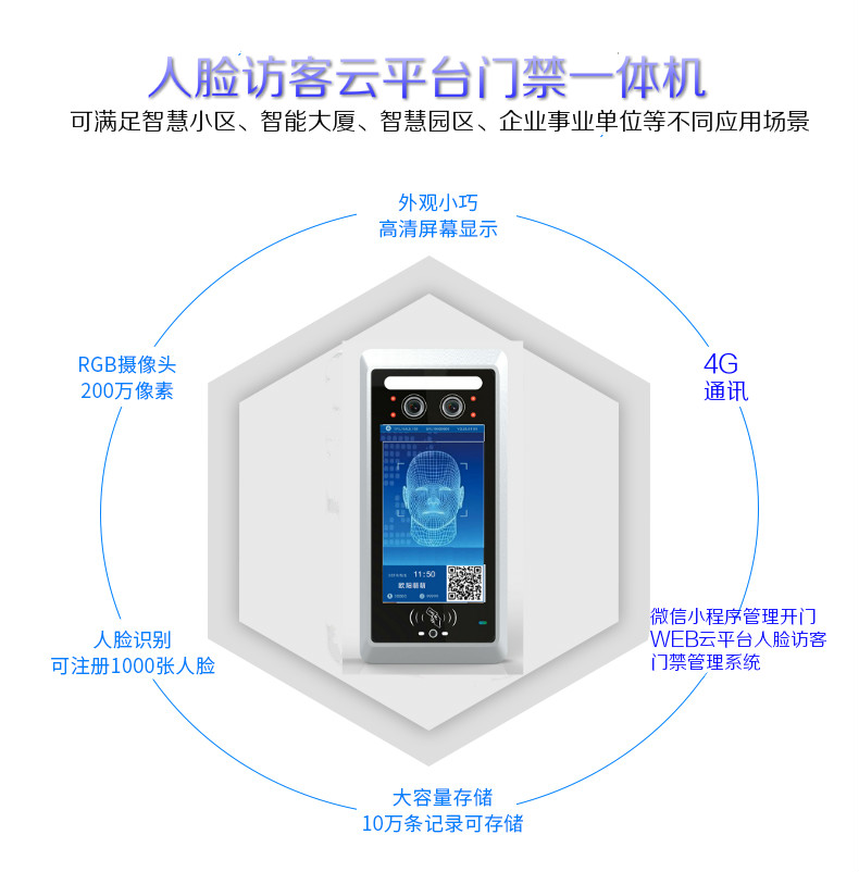 Face recognition access control visitor QR code swipe card access control WeChat scan code to open the door 4G remote door open mobile APP