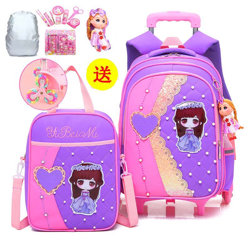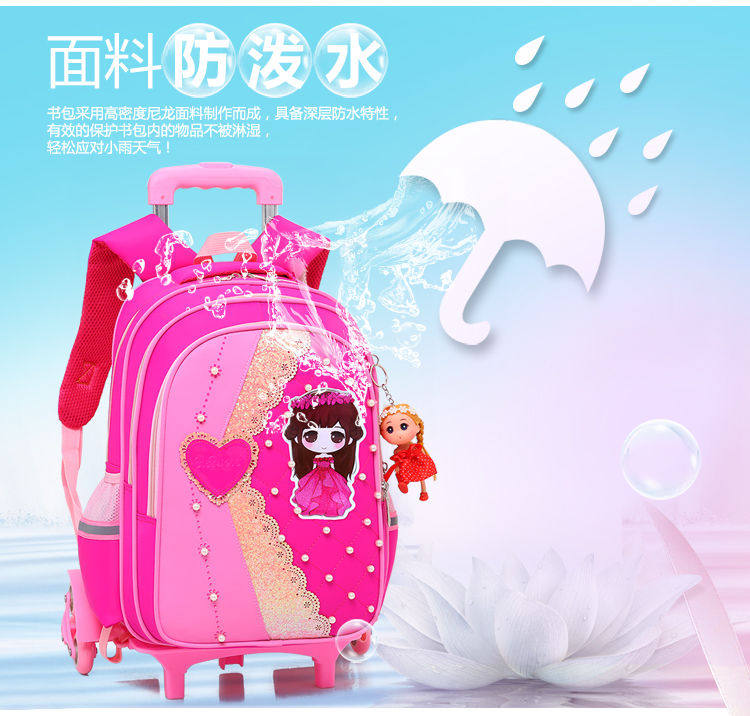 Primary school students trolley schoolbag female princess detachable dual-use girls grades 1-3-6 waterproof climbing stairs six-wheel drag