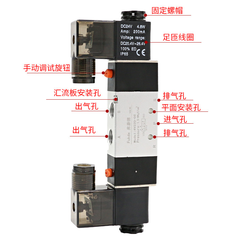 Solenoid valve air valve 4v220-08 cylinder double head 220v two-position five-way coil 24v pneumatic electromagnetic control valve