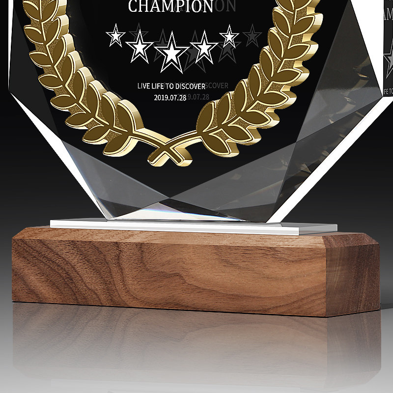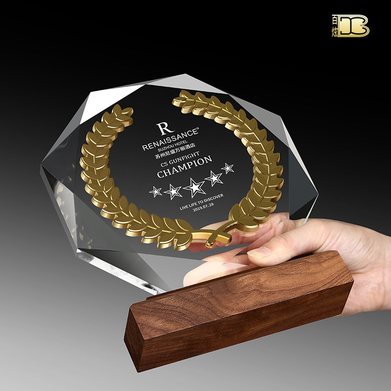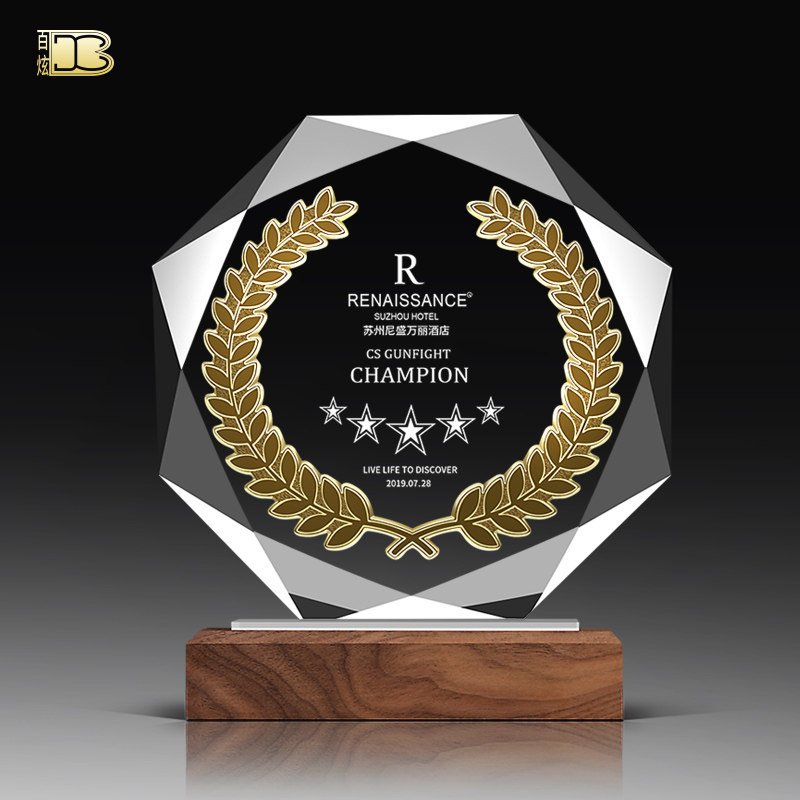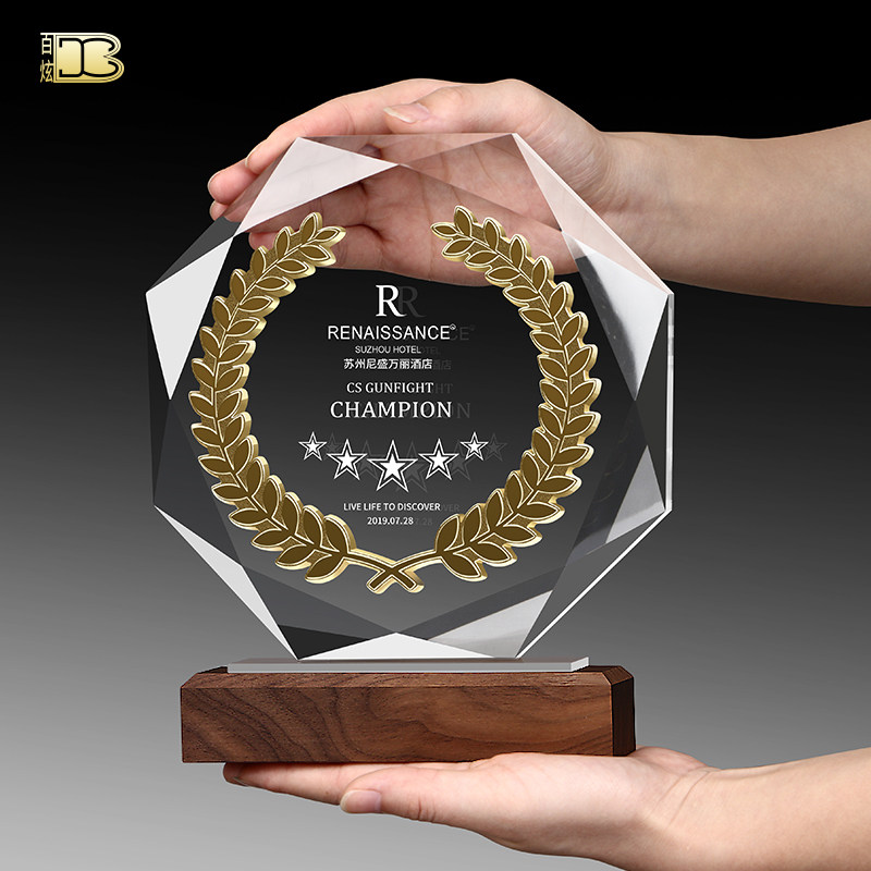 Octagonal K9 crystal trophy custom creative metal wheat ear medal custom authorization card thank you card honorary souvenir