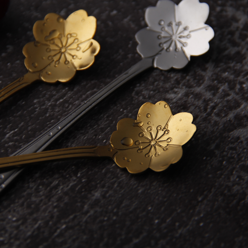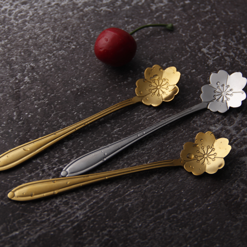 Teenage Girl Hearts Style Cherry Blossom Coffee Spoon Stainless Steel Small Spoon Petal Cup Spoon Cute Sweet Milk Tea Stirring Spoon