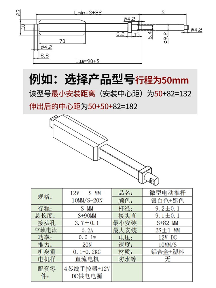Mini electric push rod telescopic rod DC Motor 12V small mini straight line 24v Louis push-pull electric push rod