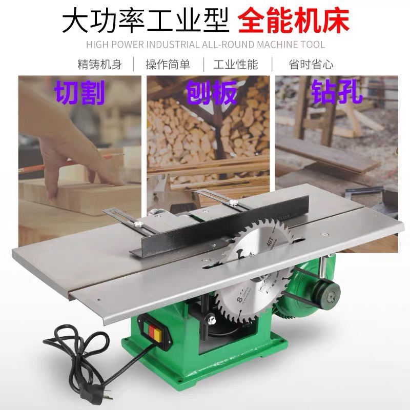 Woodworking bench planing multifunction planing sawing drill three-in-one planing machine platform type electric planing machine god instrumental disc table drilling machine tool machine