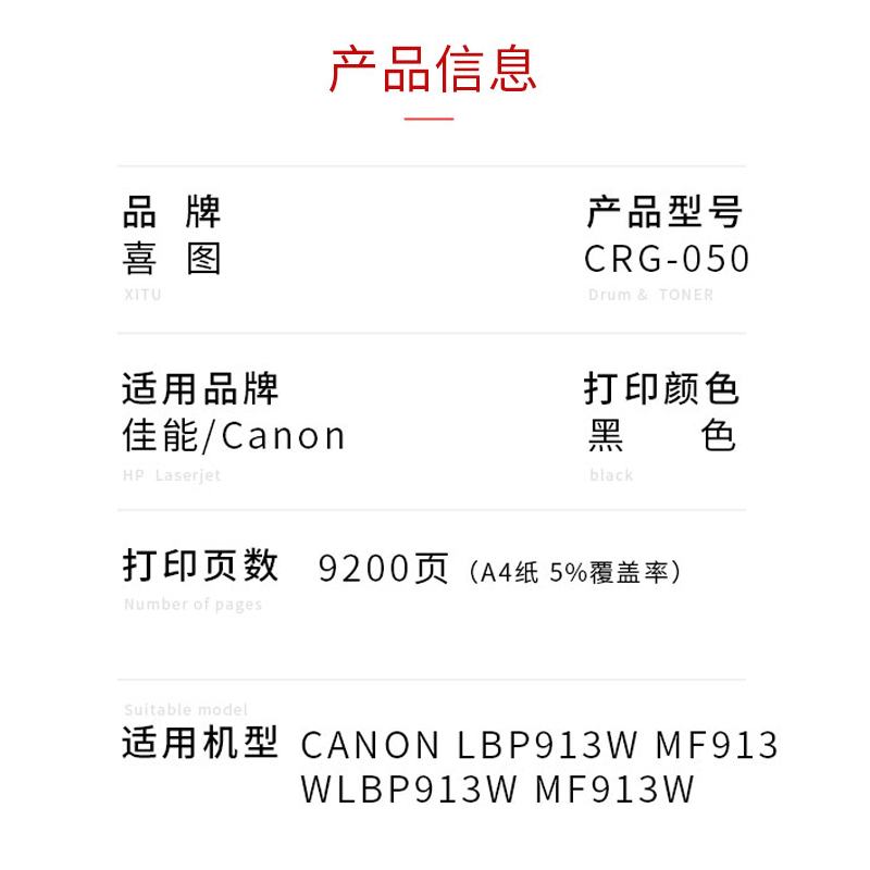 (9200 pages)CRG-050 selenium drum-(without chip) (9200 pages)CRG-050 selenium drum-(with chip) (2300 pages)CRG-05