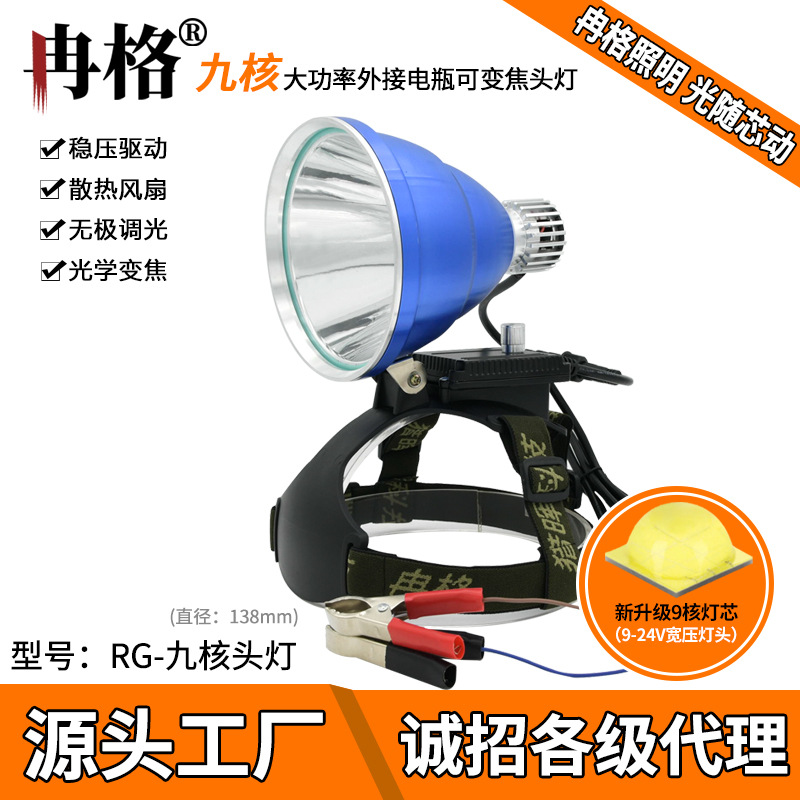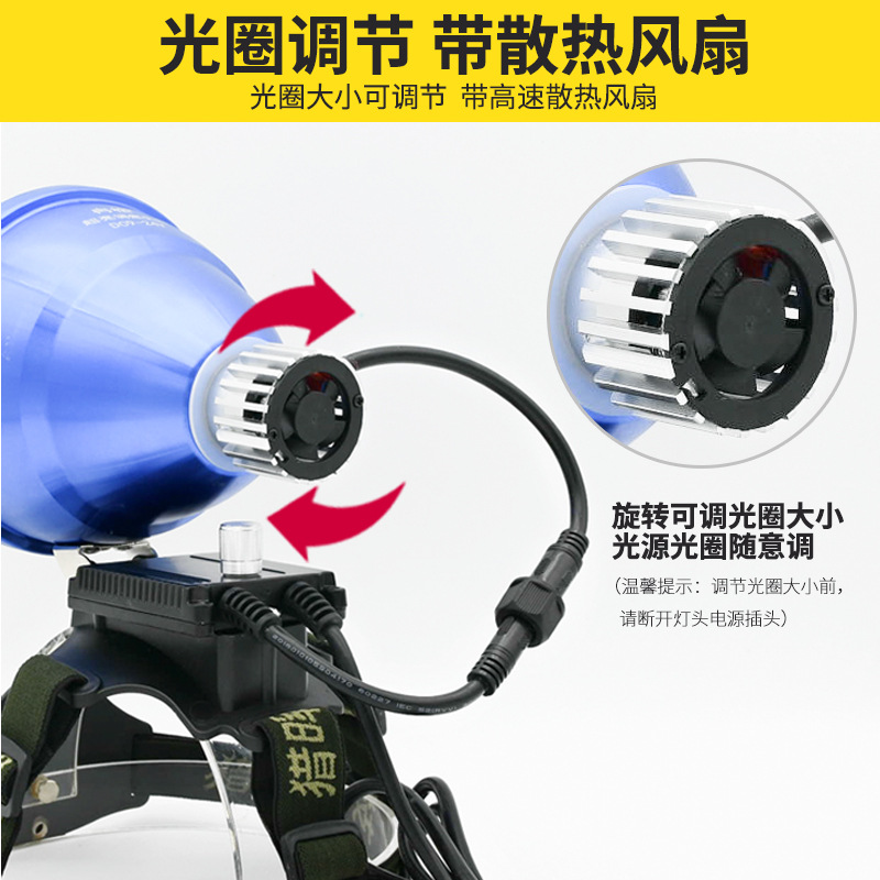 Range headlight strong light 12V lamp holder external battery 9-core super bright long-shot led Fishing light head-mounted p90 yellow light