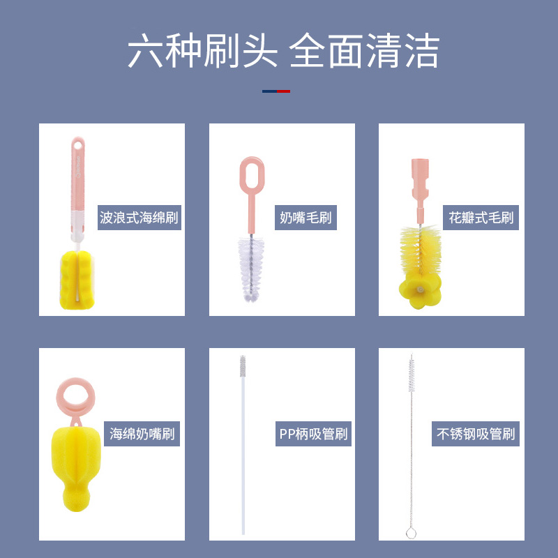 Qikibao bottle brush set Wash bottle pacifier cleaning tool brush Cleaning sponge brush Baby set of 6 pieces