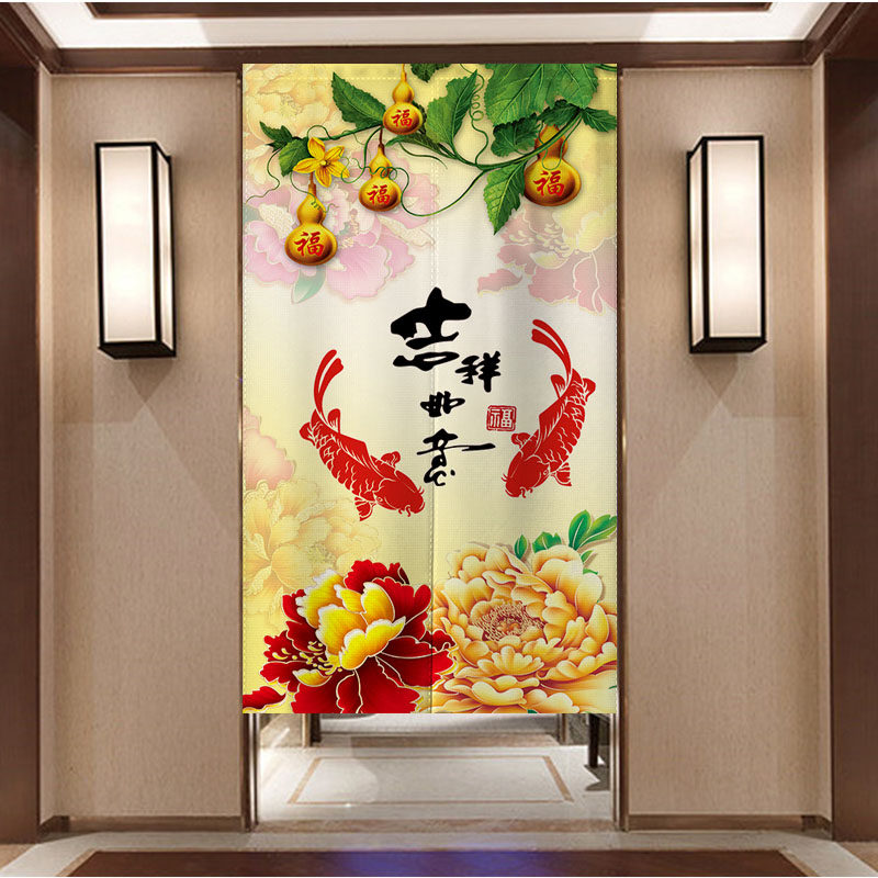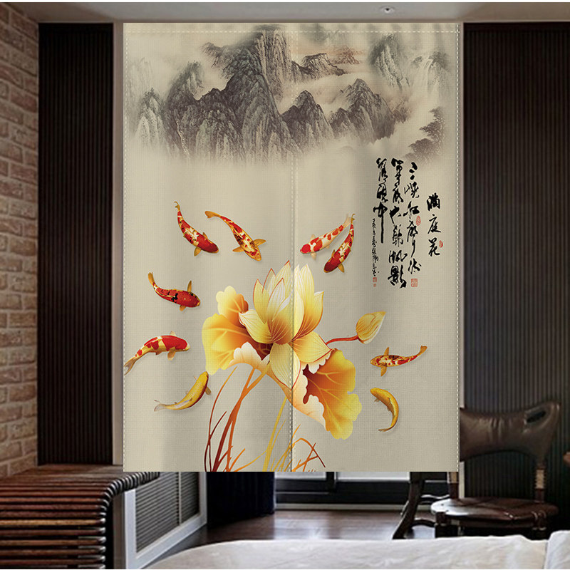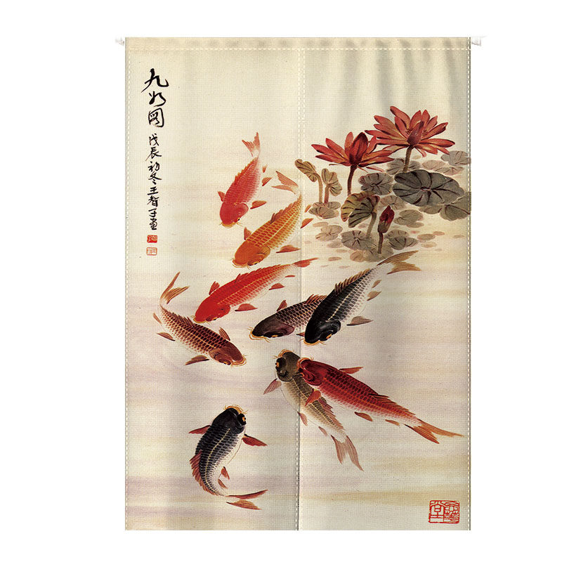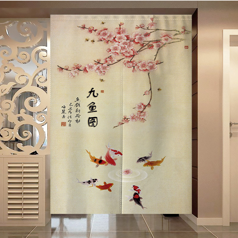 Chinese Fengshui Ninth Fish Film Curtain Decoration Divided Living Room Kitchen Curtain Cosmetic Toilet