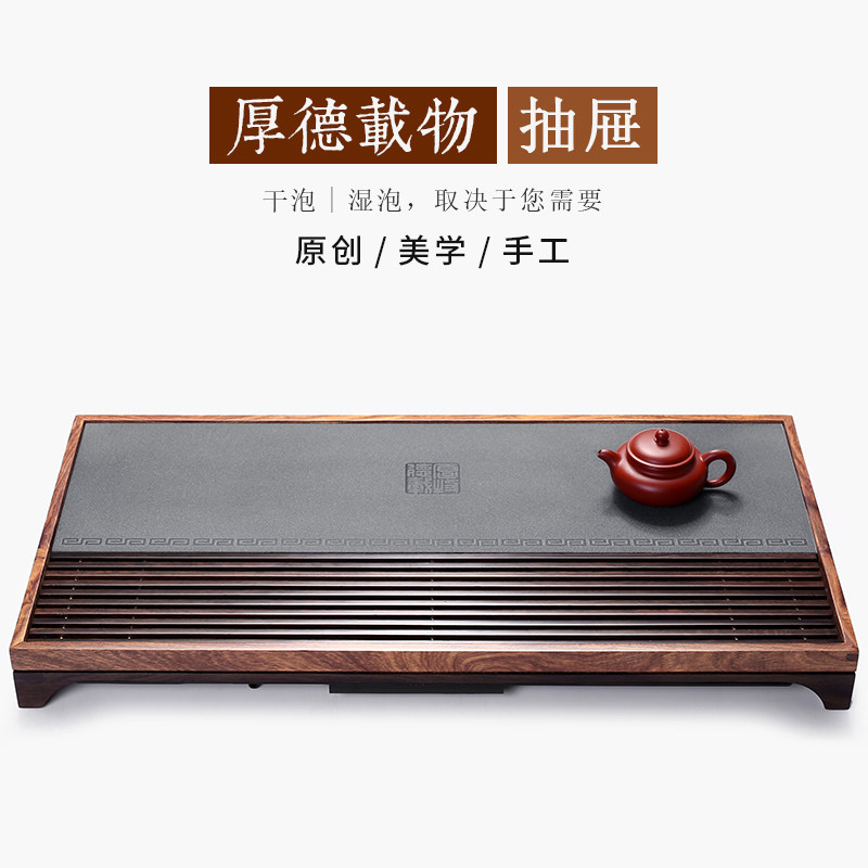 Ebony Wood tea tray household simple water storage type dry bubble Black Stone tea table living room small kung fu tea set