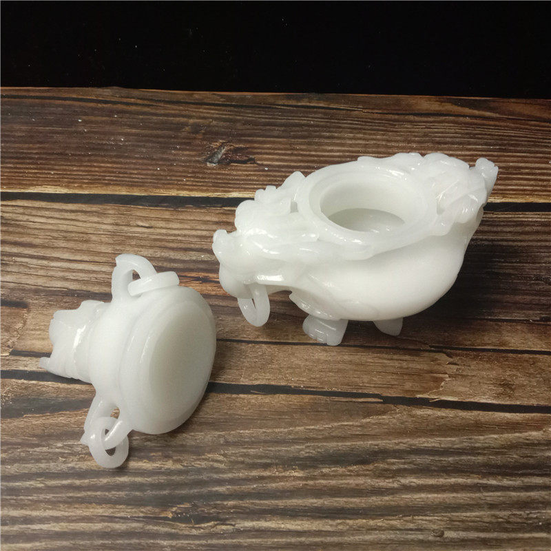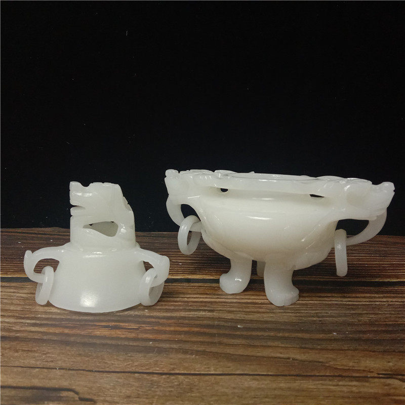 Natural jade fragrant lavender with white jade three-foot two-ear incense stove living room office decorated with feng shui incense stove swinging pieces