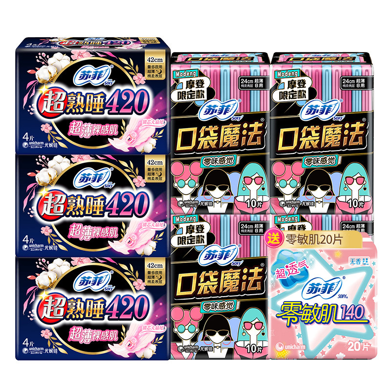 Sophie sanitary towel female pocket magic daily with 420mm combination aunt towel full box official website