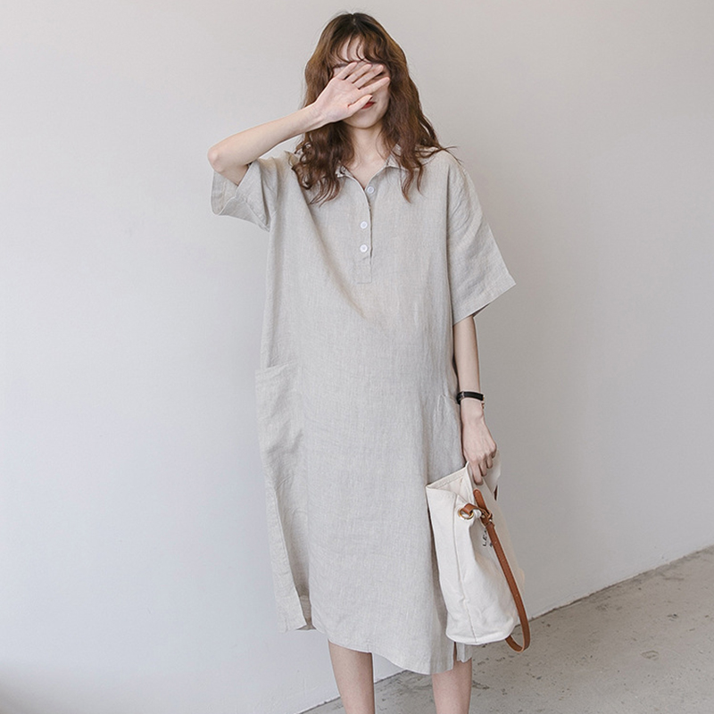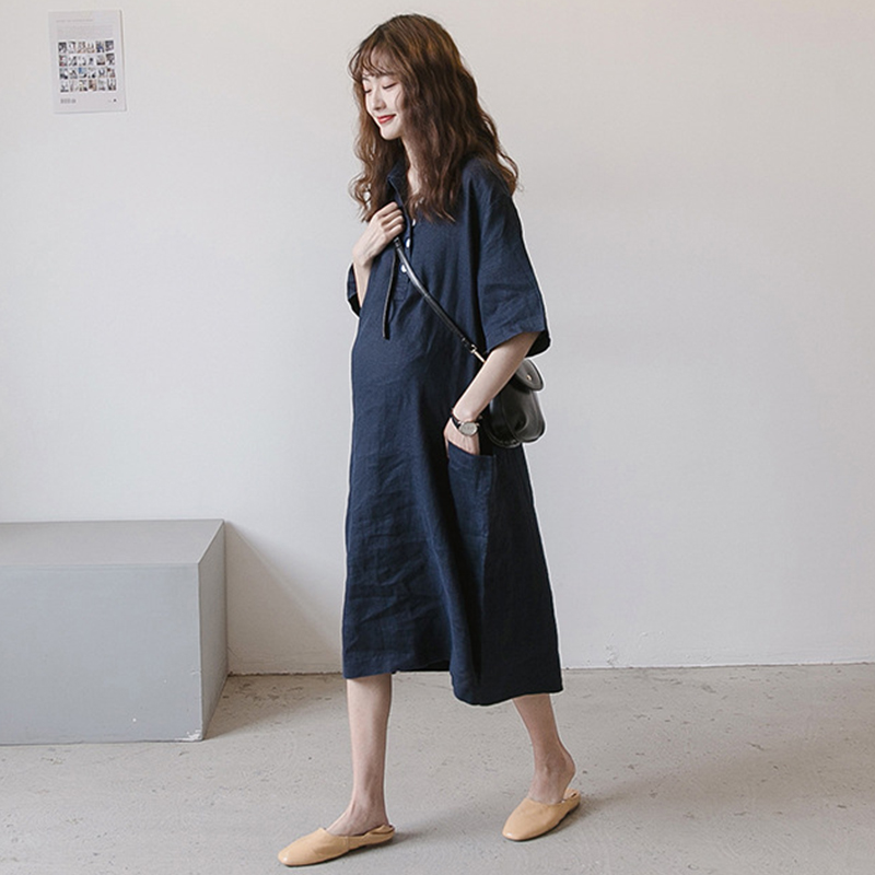 Pregnant women summer cotton and hemp skirt Lactation during pregnancy Cotton summer long over-the-knee dress dress loose large size