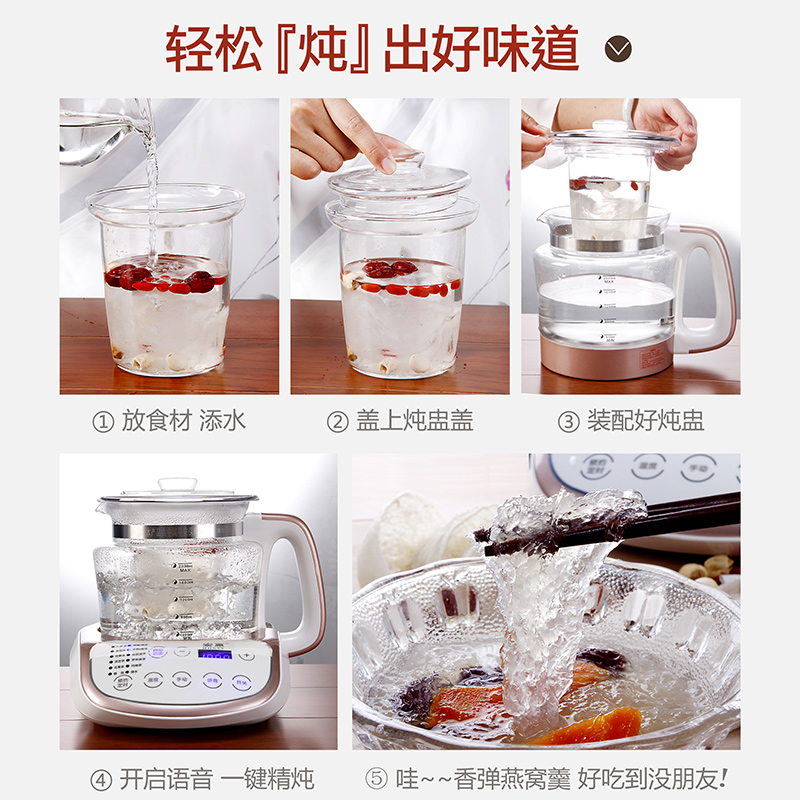 Health pot glass water diaspora cup bird's nest inner tank cup special electric pot accessories mini transparent container for one person