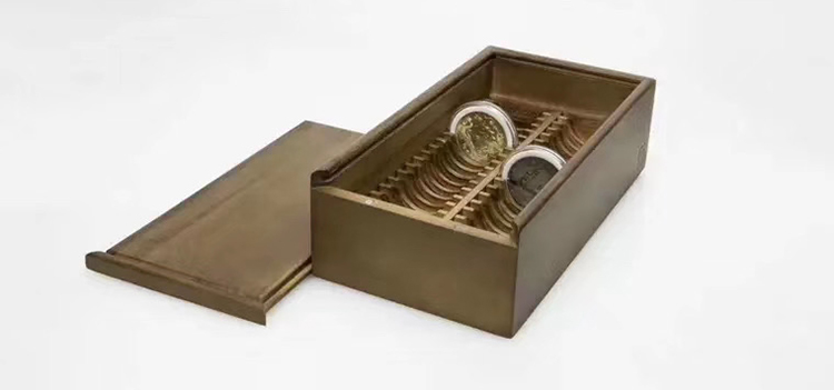 40 pieces containing 52mm round box fragrant Zhangwood solid wood box containing collection box copper money silver dollar ancient coin commemorative coin