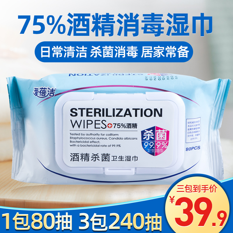 Love Bei 75 degrees Alcohol wet towels 80 pumps * 3 packs of in-home travel office germicidal and bacteriostatic sanitary wet paper towels