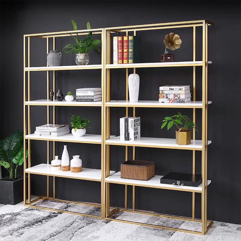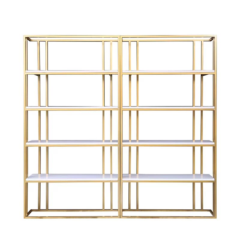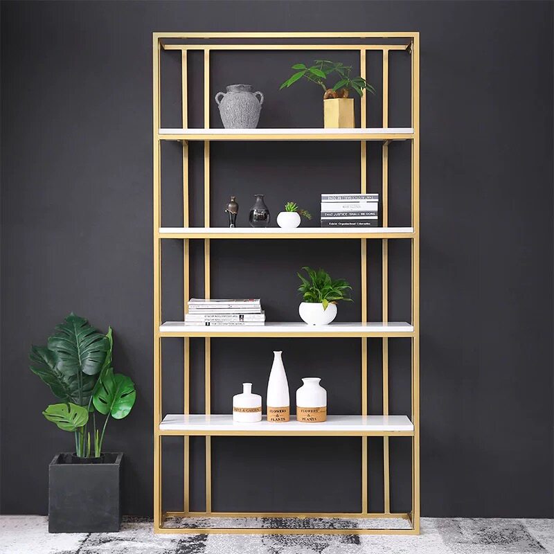 Nordic wrought iron rack simple storage shelf floor creative bookshelf solid wood partition rack golden living room display rack