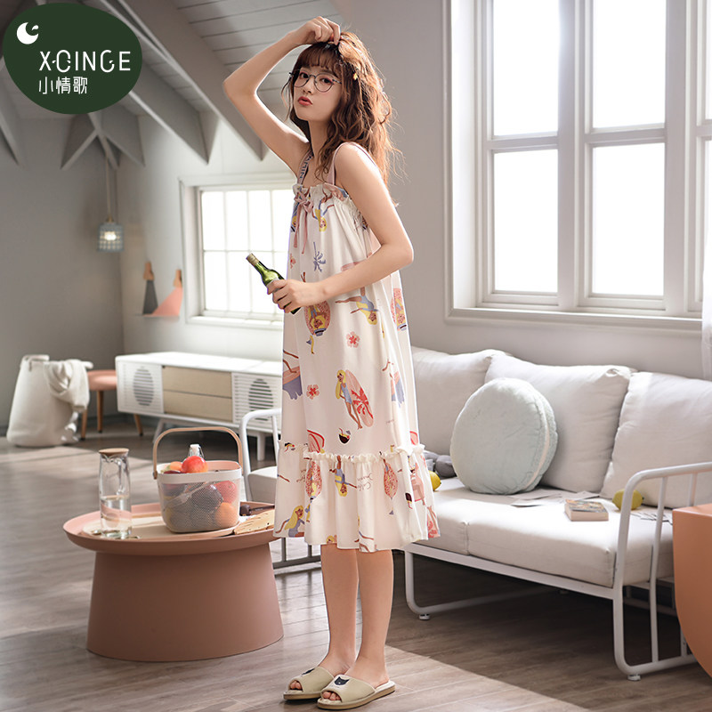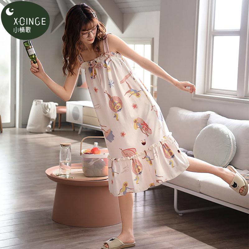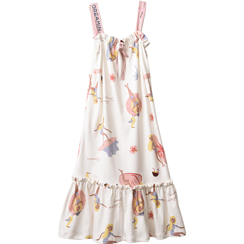 Nightdress women's summer thin sexy suspenders pajamas skirt cotton large size loose sleeveless ins pregnant women cute