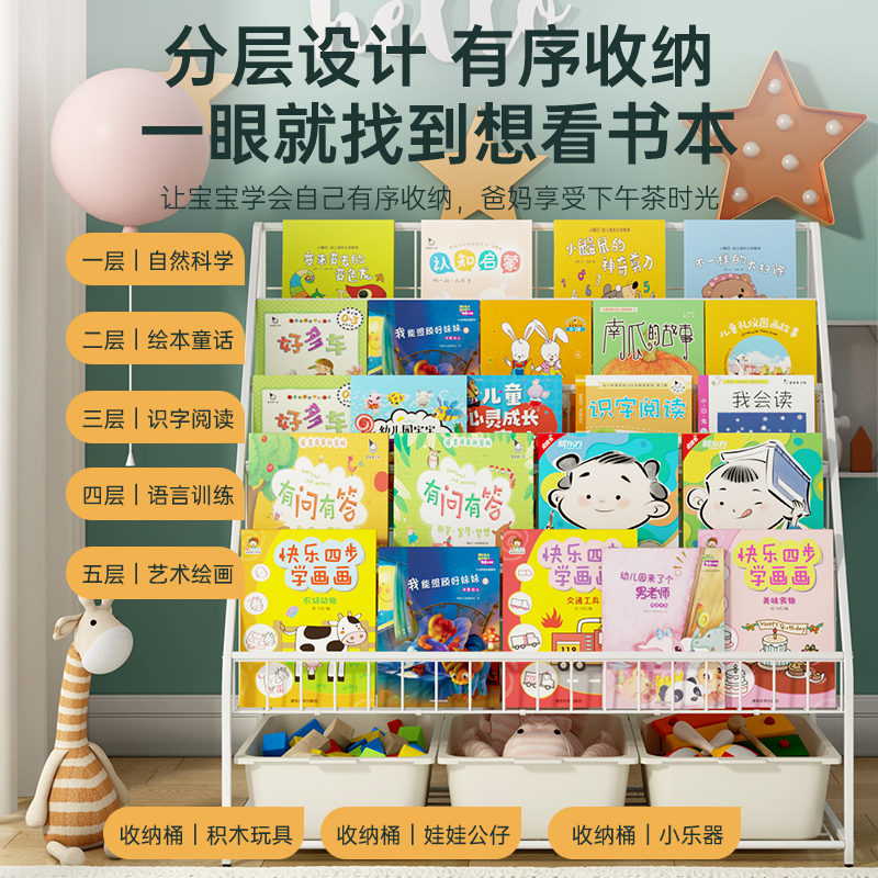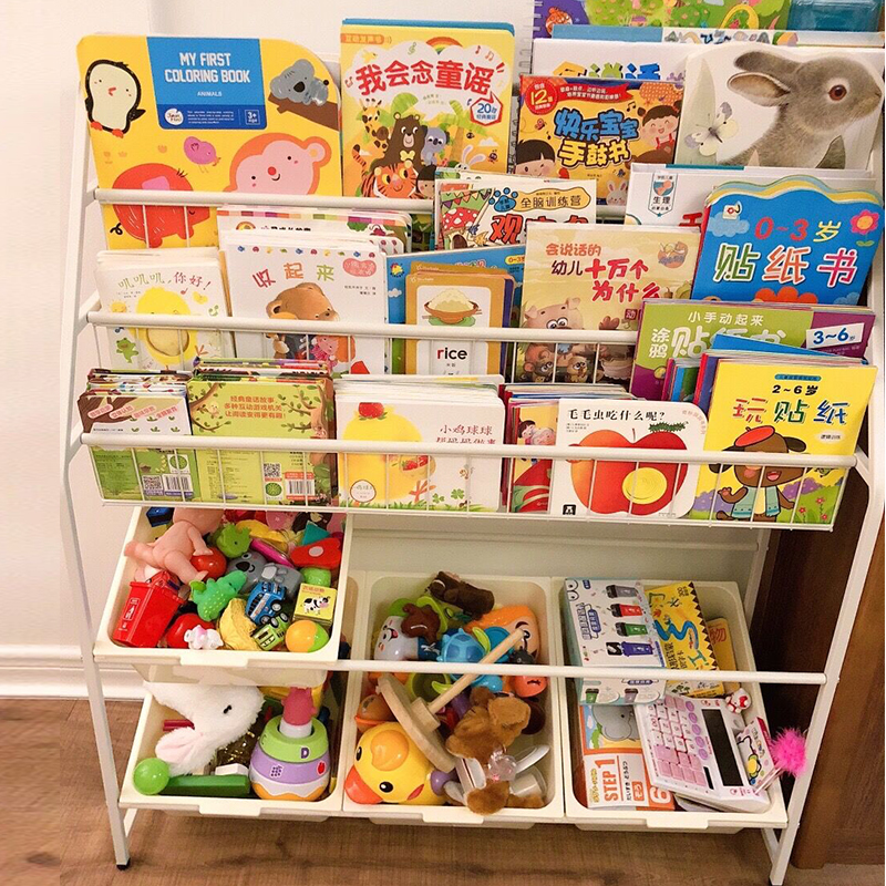 Children's bookshelves painted shelves Landing Kindergarten Toys Containing shelves Two-in-one-two-in-one reading finishing racks